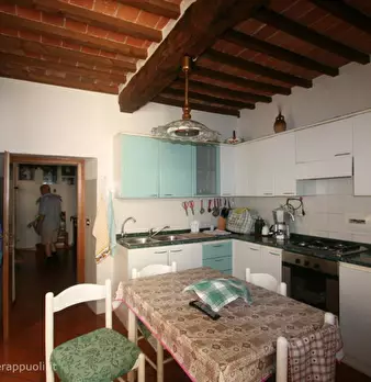 Lucignano vendesi terratetto in posizione collinare porzione di immobile capotesta di mq 213, composto al piano terra da garage di mq 41, 4 cantina, 5 sgomberi, cucina, bagno, camera, al piano primo cucina, sala, ripostiglio, 2 camere, 1 bagno, gi...