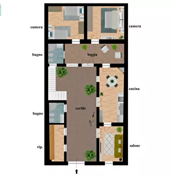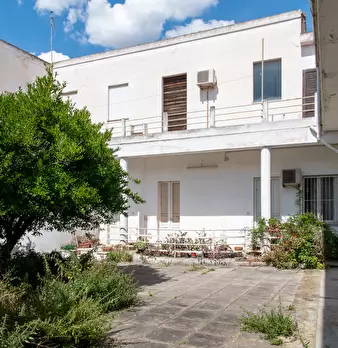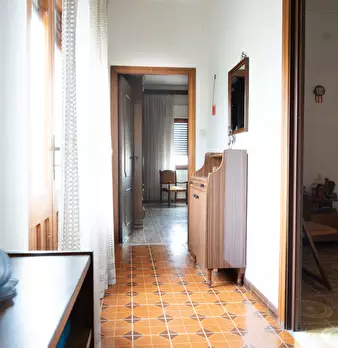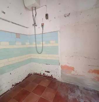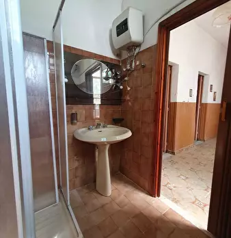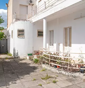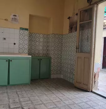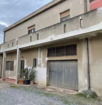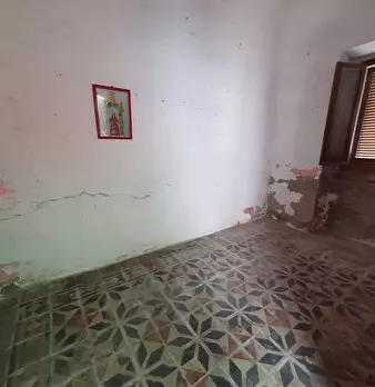 Casa campidanese trivano con loggiato, soggiorno, cucina, due camere, due bagni ripostiglio. Cortile di mq 40 carrabile. Da ristrutturare