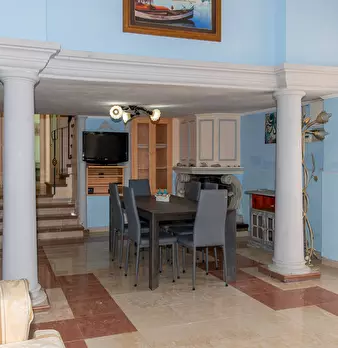 Casa campidanese su un livello pentavano con due cucine, bagno esterno, ampia cantina e un piccolo locale deposito esterno. Ampio cortile carrabile e lastrico solare accessibile