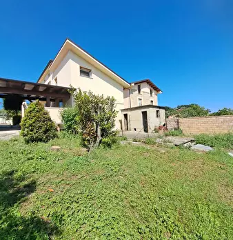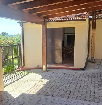 Casa Indipendente, Annesso e TerrenoPIANO TERRACucina con camino e cucina attrezzataSalaCorridoioDavanti alla proprietà è presente un posto auto privato di circa 40 mq. Una scalinata conduce al giardino, che è una lunga striscia di giardino di 300...