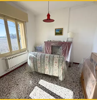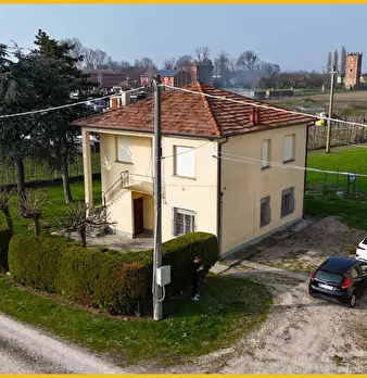 Vigarano Pieve libera casa indipendente su 4 lati diposta su 2 pianI così distribuita : P.T.: ingresso, soggiorno, cucina abitabile, retrocucina (possibilità di realizzare un bagno) ; P1: 2 camere da letto matrimoniali, 1 singola o studio, bagno. ...