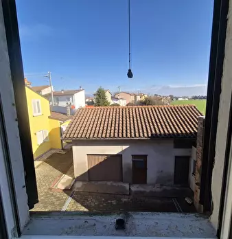 Francolino Via Lavezzola adiacenze argine del Po su ampia corte condominiale, libera e da ristrutturare, porzione di casa disposta su 2 piani così distribuita : P.T: ampio vano ingresso, soggiorno, cucina abitabile, bagno; doppio vano scale che po...