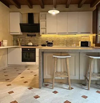 Rif 6722 - Ad. via Giulio Romano. Centralissima Casetta Mantovana completamente ristrutturata su più livelli e parzialmente arredato con bellissimi mobili su Misura. Internamente, a piano terra troviamo la zona Giorno con camino e Cucina a Vista...