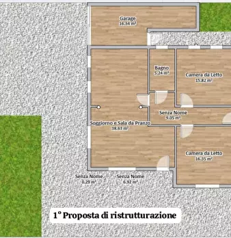 Situata nella frazione di Onara, casa singola allo stato grezzo e composta di: ingresso, cucina, soggiorno, tre camere, tre bagni, lavanderia, centrale termica, due poggioli, due logge, portico, pompeiana, garage doppio e giardino privato di circa...