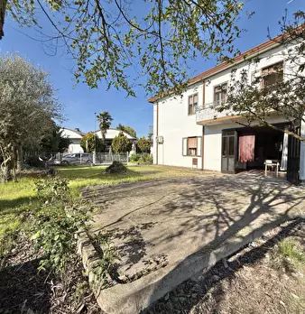 Casa singola parzialmente ristrutturata e composta di: ingresso, soggiorno, cucina, tre camere, due bagni, centrale termica-lavanderia, sgombero, tre ripostigli, cantina, taverna, portico, terrazza, garage di 90 mq. e giardino privato di circa 120...