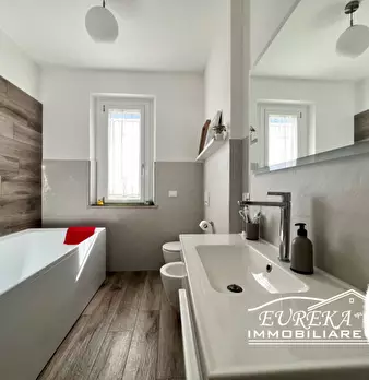 Splendida casa singola, completamente ristrutturata con finiture e materiali di pregio, con giardino privato, disposta su tre livelli e di complessivi 220 mq circa. Al piano terra si trova l'ampio e luminoso soggiorno con camino ad angolo, il disi...