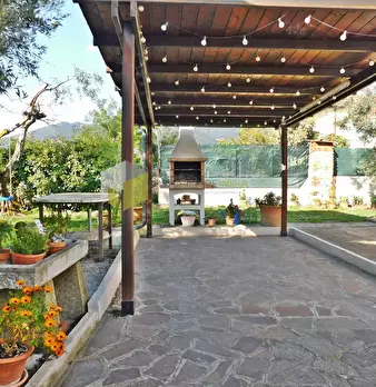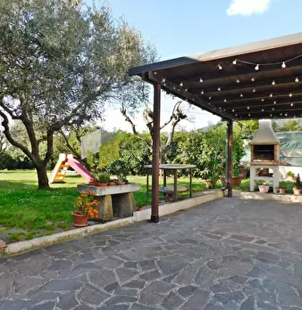 In tranquilla posizione collinare e con vista panoramica casa singola contornata su quattro lati da giardino di mq. 550 circa in parte piastrellato, oltre a mq. 2.500 di terreno con ulivi e frutti. La casa è posta su tre livelli ed è composta al p...