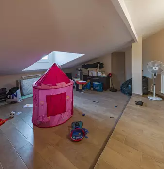 PORZIONE DI VILLETTA BIFAMILIARE AL PRIMO PIANO E MANSARDA CON GRANDE TERRAZZA , GARAGE E GIARDINO Ampia e luminosa porzione di villetta bifamiliare di 289 mq, disposta su più livelli e dotata di utenze autonome. L'ingresso, situato al piano terr...