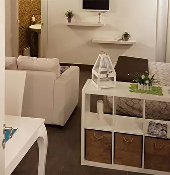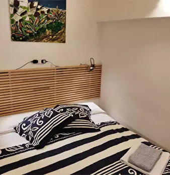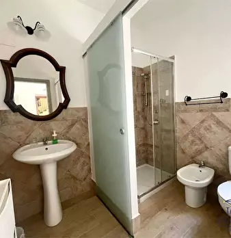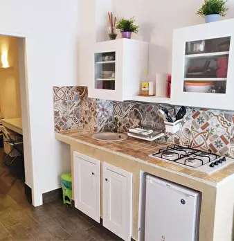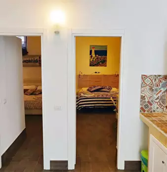 L'indipendente ha ingresso autonomo su un ampio spazio living (strutturato come cucina e soggiorno: con spazio vivibile dotato di poltrone e spazio cucina dotato di angolo cottura), un piccolo ripostiglio a muro, un vano aperto intermedio (fruibil...