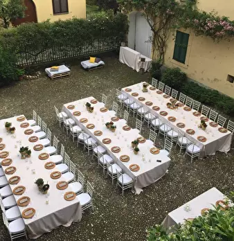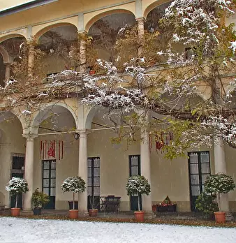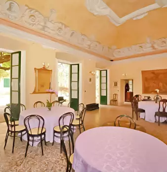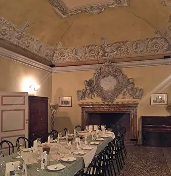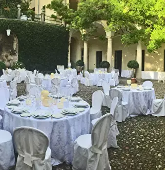 Dimora storica già esistente nel 1400 dei Visconti Sforza.Formata da linee architettoniche classiche, portici, colonnati con volte a tutto sesto, camini in marmo, saloni con pavimenti in cotto, mosaici veneziani, affreschi e soffitti a cassettoni....