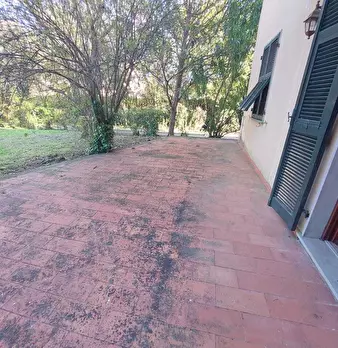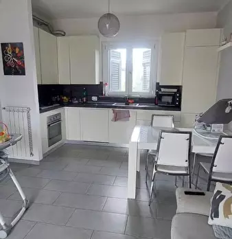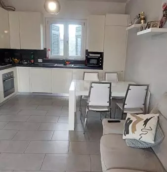Trilocale in villetta con ingresso indipendente, disposto su due livelli, composta da ingresso - soggiorno , cucinotto , bagno al piano terra; camera con terrazzo vista fiume. Completa la proprietà porzione di giardino . Rifiniture di lusso. CLAS...