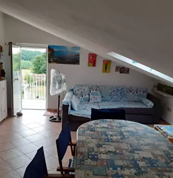 Sarzana, primissima collina, casa semindipendente disposta su due livelli. L'immobile risulta così distribuito: piano terra - ampia terrazza abitabile di accesso di circa 25 mq, soggiorno con zona pranzo e cucinotto; piano primo - due camere da le...