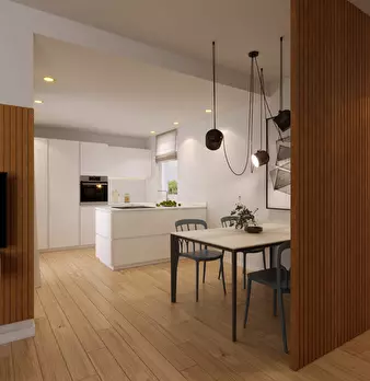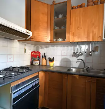 Porzione al piano terra di trifamiliare composta da ingresso indipendente in giardino, porticato, soggiorno, cucina, tre camere e due bagni. Completano la proprietà ampio garage e spaziosa cantina al piano sottostrada. Attualmente locato.