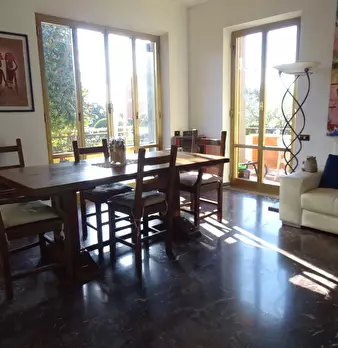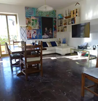 Sarzana, primissima collina, casa semindipendente disposta su due livelli. L'immobile risulta così distribuito: piano terra - ampia terrazza abitabile di accesso di circa 25 mq, soggiorno con zona pranzo e cucinotto; piano primo - due camere da le...