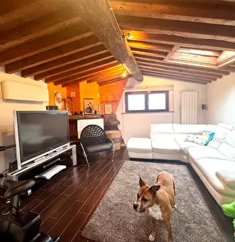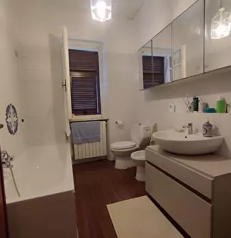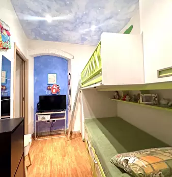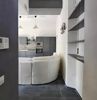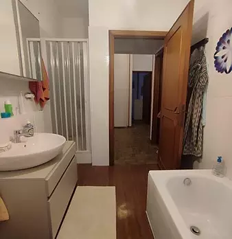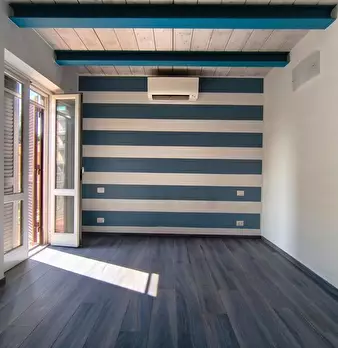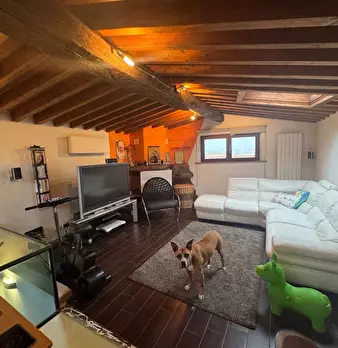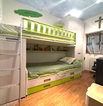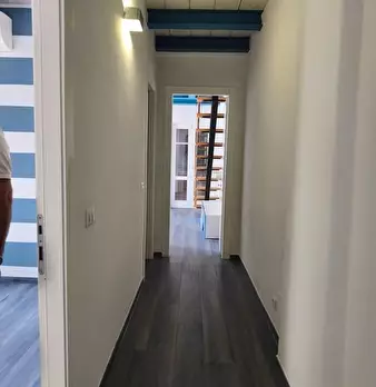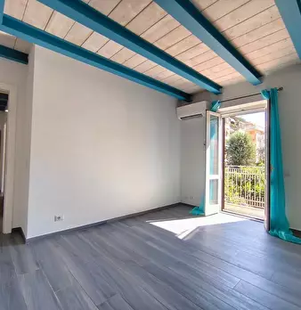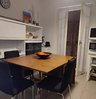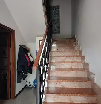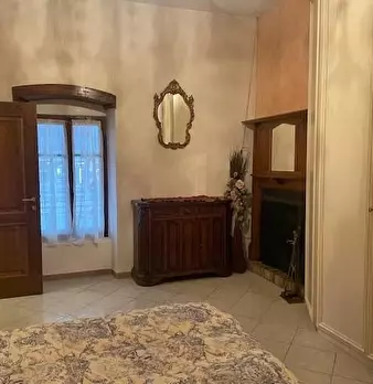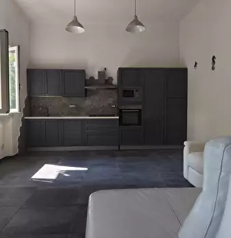 Appartamento al Piano Primo Senza Ascensore sul Confine tra Massa e Carrara. Ingresso su Disimpegno, Soggiorno con Angolo Cottura, Camino Funzionante e Accesso a Terrazzo Perimetrale con Lavatrice. Corridoio Zona Notte, Camera Matrimoniale, Camera...