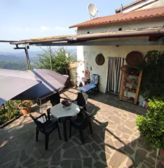 Fosdinovo Tendola in posizione panoramica semi indipendente subito abitabile al piano terra su unico livello. Entrata da cancello elettrico su corte piastrellata con due posti auto.Giardino terrazzato con alberi da frutto di circa 500 mq. tre como...