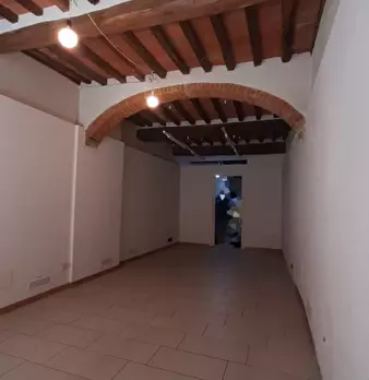 San Giovanni Valdarno, centrale, fondo commerciale di mq 50 composto da ampio vano di ingresso, vano retrostante (separato da parete in cartongesso e, pertanto, di facile rimozione), antibagno e bagno. Climatizzato e con porta anti sfondamento. Po...