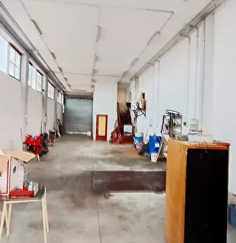 Chieti Scalo Via Penne Capannone mq.210 (m.30 x 7) con 2 Bagni e Soppalco. Piazzale Antistante mq.90 circa. Altezza m.5. Portata Solaio 18 Q./Mq. Impianto Elettrico Kwh. 380. Dotato di Aria Compressa