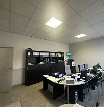 Il piano rialzato è composto da doppio ingresso, ampia sala d'attesa, due grandi uffici open-space, quattro uffici, una sala riunioni, un locale rack e quattro bagni. Il piano seminterrato, collegato internamente da due bellissimi vani scala, è co...