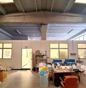 Capannone di Mq 500 al piano terra e Mq 500 al primo piano rispettivamente a destinazione laboratorio e magazzino. Dotato di montacarichi, allarme, area cortiliva privata, cabina elettrica, impianto di raffrescamento e riscaldamento,3 portoni a no...