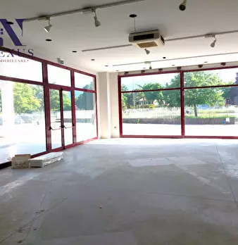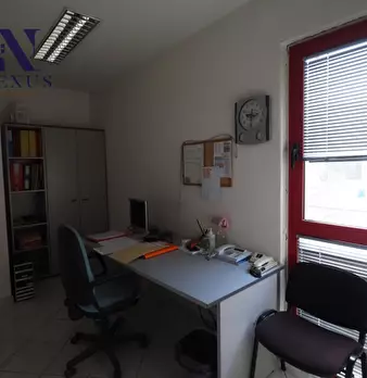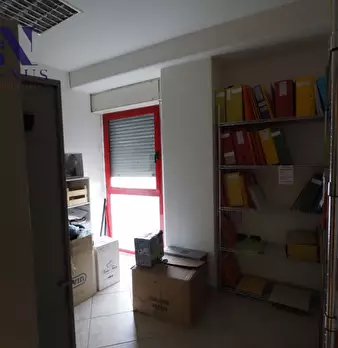 Locale commerciale con due ampie vetrine, situato al piano terra di un edificio di due piani (terra e primo),con forma rettangolare e copertura piana, costituito da 4 unità commerciali a piano terra e 5 unità ad ufficio a piano primo, oltre alle p...