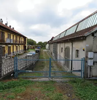 Fabbricato dotato di ampio accesso carraio a due vie, composto da deposito, magazzino, diversi ambienti di lavoro chiusi e semichiusi e locali accessori per il personale. Completano la proprietà due corti esclusive, gravate per tutta la loro esten...