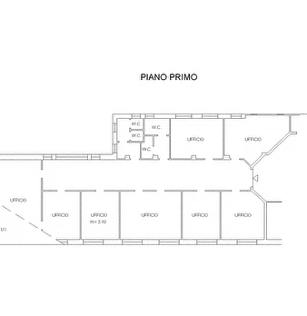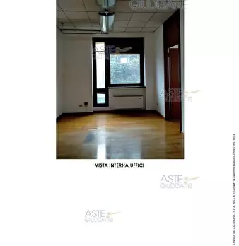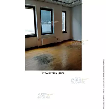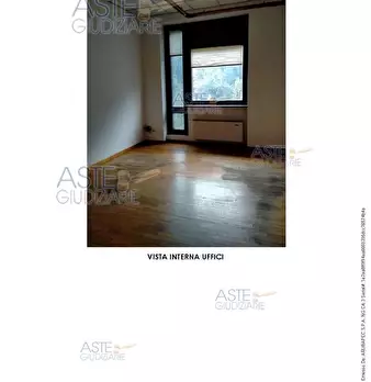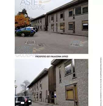 ufficio al piano primo composto otto locali , corridoio, due nuclei di servizi igienici ciascuno costituito da antibagno e due w.c., area pertinenziale di parcheggio per due posti auto in piano terreno e area pertinenziale residuale verde in piano...