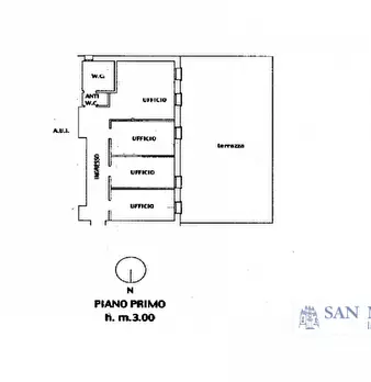 VICINANZE VIALE TRENTO - In zona comoda al centro, proponiamo in vendita un ufficio al piano primo di mq 360, attualmente suddiviso in 6 stanze e due bagni. L'ufficio presenta una grande terrazza interna. Caldaia autonoma con termoconnettori e con...