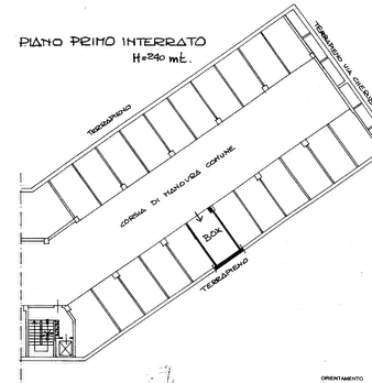 In corso Trapani 98 proponiamo Box Auto coperto al secondo piano interrato di 25,60 mq. Uscita pedonale con ascensore.Larghezza ingresso 2,17 metri. Altezza 2,6 m ; Larghezza interna 4,6 m ; Lunghezza 5 metri.