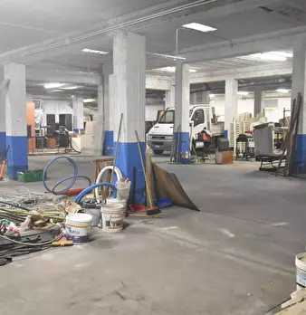 Locale garage sito al piano seminterrato di mq 291, accessibile da rampa carrabile, unico ambiente e separati un bagno e un ripostiglio. Accesso anche pedonale.