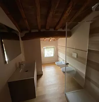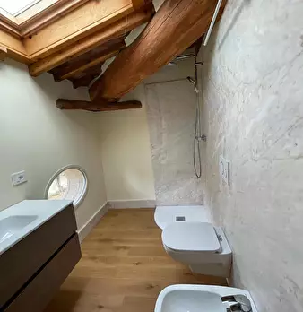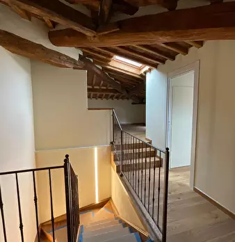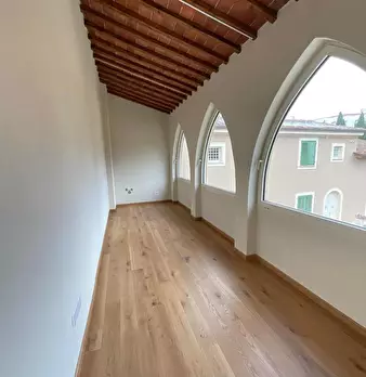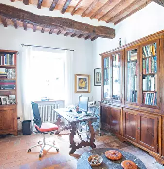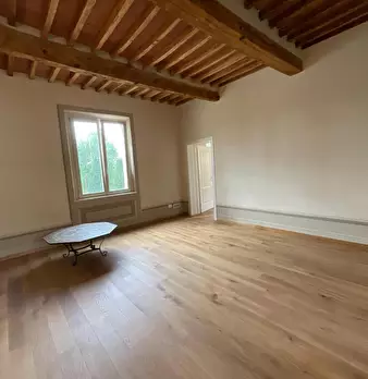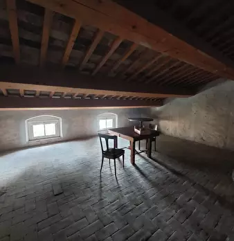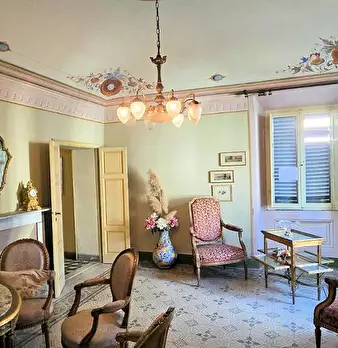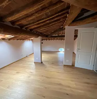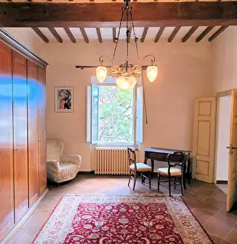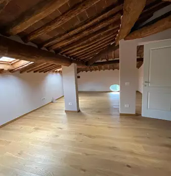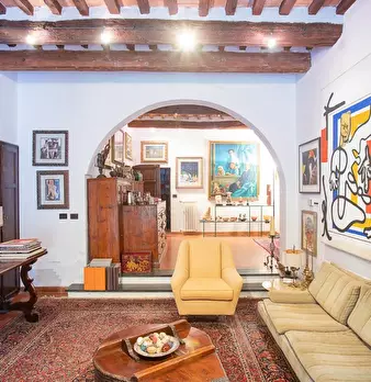 San Miniato, come un prezioso monile, incastonato nel pieno centro storico, un antico palazzotto suddiviso in due appartamenti, dei quali uno affrescato, corredati di giardino esclusivo e di loggia panoramica. Al piano primo, attraverso un vano s...