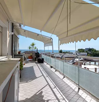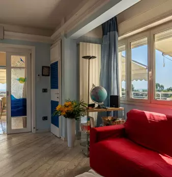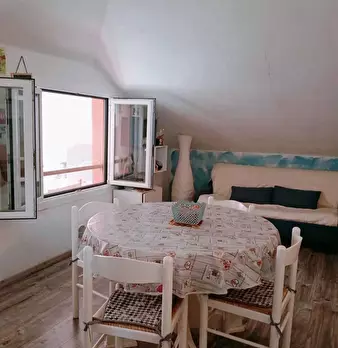 Fiumaretta - Scopri questa incantevole mansarda al secondo piano di un condominio a pochi passi dal mare, perfetta per chi cerca un alloggio vicino alla spiaggia. Con un soggiorno luminoso dotato di angolo cottura, questo appartamento offre un'atm...