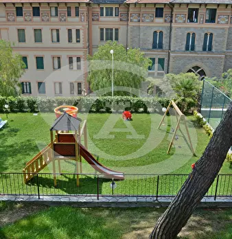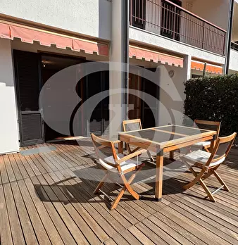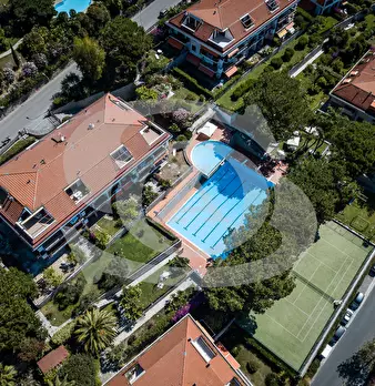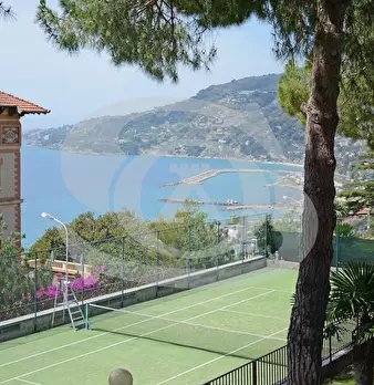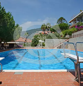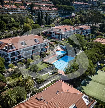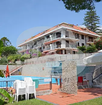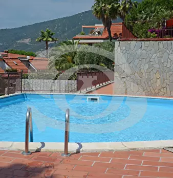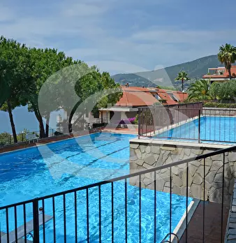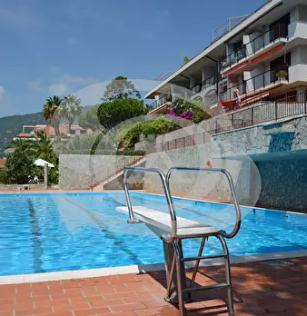 Appartamento monolocale con giardino e piscina in vendita ad Ospedaletti. L'appartamento si trova in un complesso residenziale dotato di Piscina, Campo da tennis, Parco giochi per bambini. Si accede all'appartamento con ingresso su piccolo disimpe...