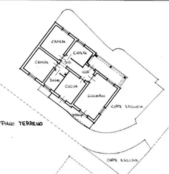 Abitazione composta da due locali uso magazzino/cantina al piano seminterrato; ingresso con corridoio di disimpegno, soggiorno-pranzo, balcone, cucina, bagno e tre camere al piano terra; oltre corte pertinenziale, giardino e altra area verde. Supe...