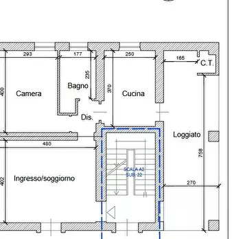 Alloggio residenziale di totali 89,86 mq posto al piano terra del fabbricato principale di un più ampio complesso immobiliare, così composto: ingresso su soggiorno, cucina, 3 camere, 2 bagni, un portico; pertinenziale all’alloggio è un posto auto ...
