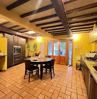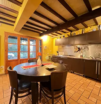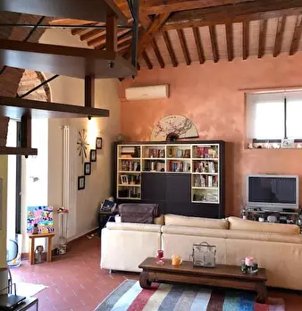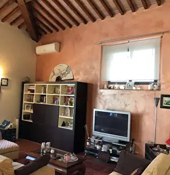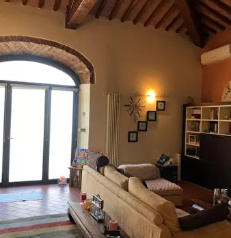 Porzione di Colonica immersa nella campagna, libera su tre lati e completamente ristrutturata, mantenendo le carattetistiche delle tipiche case toscane, con pavimenti in cotto e travi a vista. Al piano terreno si trova la zona soggiorno pranzo con...