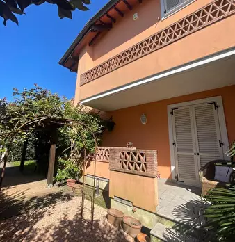 Porzione di villetta Bifamiliare di grandi metrature, praticamente nuova, ed arredata. 3 Camere, 3 Bagni, Mansarda abitabile e taverna. Resede esterno con giardino e posto auto, nelle vicinanze di Pietrasanta a pochi passi dal centro