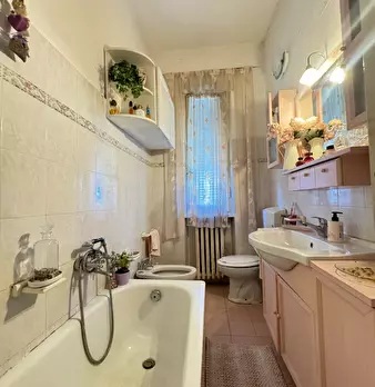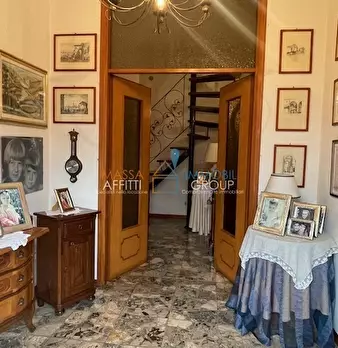 In zona comoda e a pochi passi dai negozi, in edificio liberty, porzione di bifamiliare di circa 160 mq sviluppata su tre livelli: ingresso in soggiorno doppio, cucina, bagno e lavanderia al piano terreno da cui, con una scala in marmo, si raggiun...