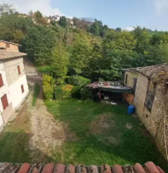 Montecorone di Zocca: in piccola borgata storica di prime e seconde abitazioni, VENDESI porzione di casa su tre piani, porzione di basso_comodo e annessi terreni agricoli.Abitazione: PT: ingresso in Tinello con camino e cucinotto di passaggio; P.1...