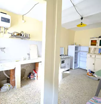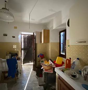 Casa tipica, due appartamenti con ingressi indipendenti, composti da cucina, soggiorno, due camere, bagno; corte, ampi fondi da adibire a magazzino e/o locale commerciale
