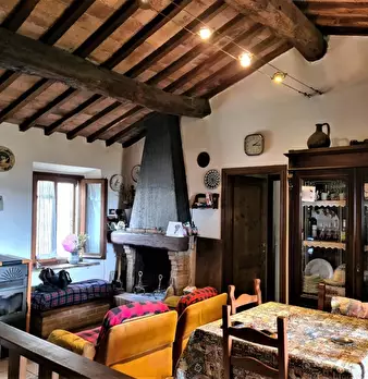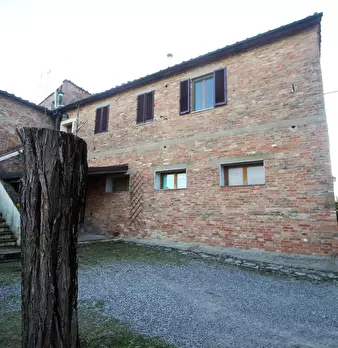 Casciano - Murlo - Fuori dal paese all'interno di un caratteristico borgo porzione terratetto di un immobile indipendente con struttura in pietra sviluppato su due livelli da una scala esterna si accede al piano primo nella zona giorno con cucina/...