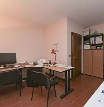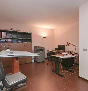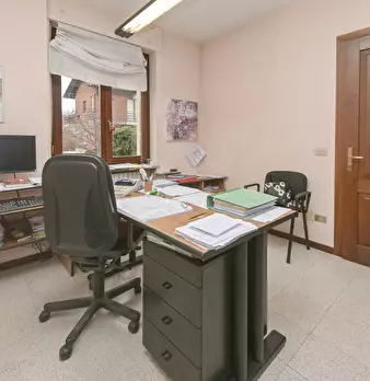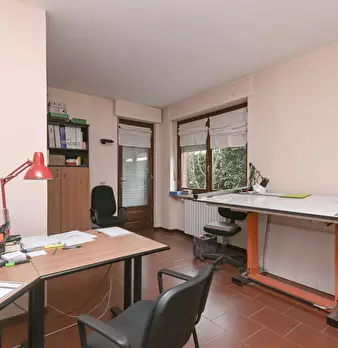 Su strada interna molto tranquilla proponiamo una porzione di bifamiliare libera su tre lati. La casa è libera da subito - attualmente è utilizzata come ufficio - ed è disposta su tre livelli. Al piano interrato troviamo un comodo garage, una cant...