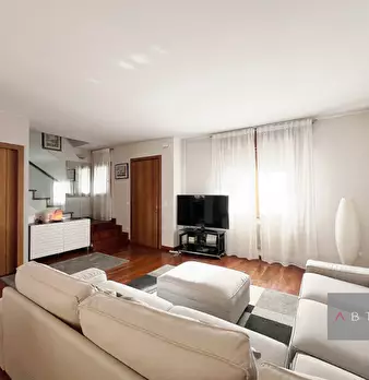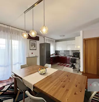Porzione di quadrifamiliare di testa composta di: ingesso, soggiorno-pranzo, cucinino, centrale termica, due bagni, due camere matrimoniali, ripostiglio utilizzabile come terza camera, cantina, disbrigo, garage doppio, due poggioli e giardino priv...