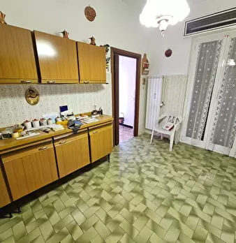 Alloggio ubicato al piano primo e composto da ingresso e da un piccolo vano da cui si accede agli altri locali, scendendo due gradini. Dal vano ingresso troviamo un primo locale destinato a salotto, proseguendo, si arriva al vano cucina e al local...