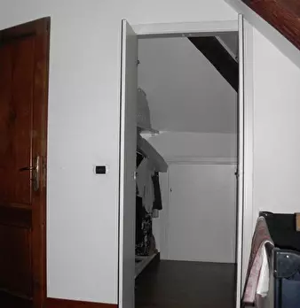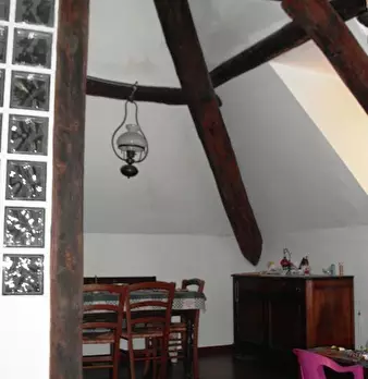 Pittoresca mansarda in palazzina d' epoca, cucina, soggiorno, camera, bagno, travi a vista termo autonomo.