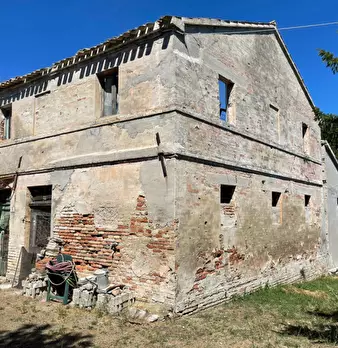 SENIGALLIA, località Montignano, in aperta campagna, casolare disposto su due livelli per totali 336 mq. completamente da ristrutturare, con tetto in parte già crollato e corte esclusiva di 2.000 mq. tutta recintata, con diversi alberi da frutto e...