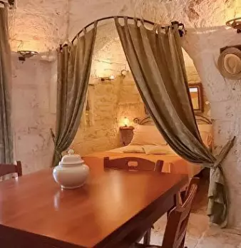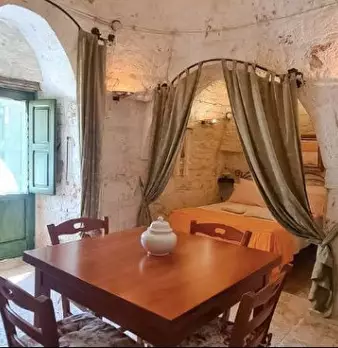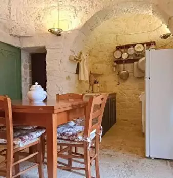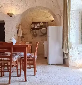 In Puglia, agro di Ceglie Messapica, zona "Grotte di Montevicoli", proponiamo in vendita complesso di trulli finemente ristrutturato con pietra a vista, composto da living-cucina, alcova letto, servizi, patio, cisterna, possibilità di ampliamento ...