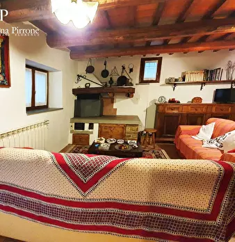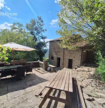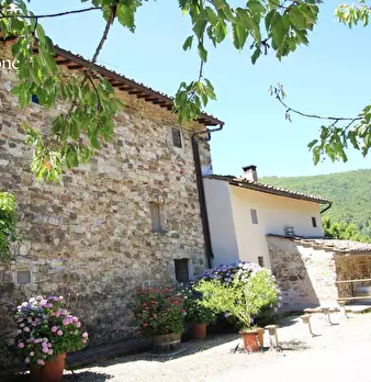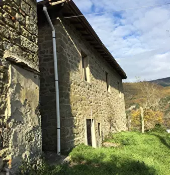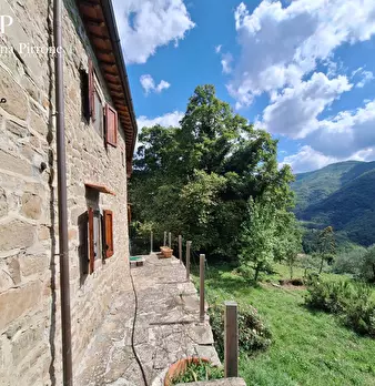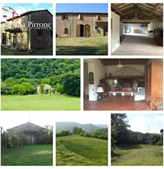 San Godenzo, a circa 3 km dal paese in posizione dominante, vendesi bellissimo complesso colonico rurale immerso in terreni di proprietà per un totale di circa 8 ettari. Gli immobili comprendono la casa padronale in pietra di mq.170 circa con cami...