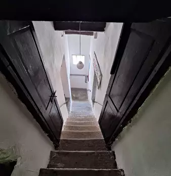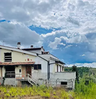 Rif. 1273 - Montespertoli Campagna - Posta alla sommità di bella collina dominante e panoramica sulla vallata sottostante vendesi porzione di colonica di circa 320 mq. attualmente in parte ristrutturata e composta da cinque vani oltre alla cucina,...