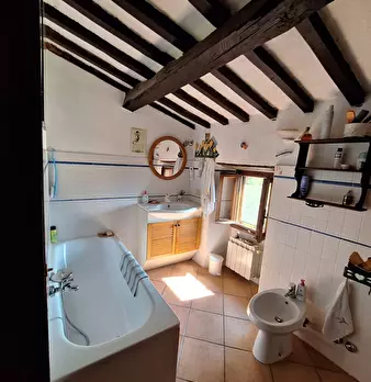 Rif. 585 - Montespertoli campagna - Bellissima porzione di colonica da terra a tetto finemente ristrutturata con materiali caratteristici delle vecchie coloniche toscane, e composta da ampio soggiorno, sala pranzo con cucinotto, bagno con antibagn...